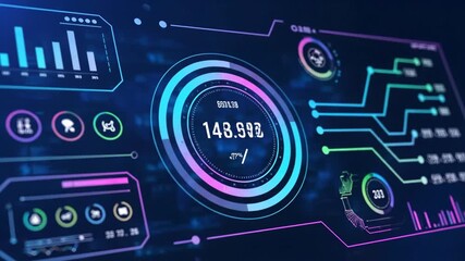 Digital Network Icons Floating On Dark Abstract Background Videos