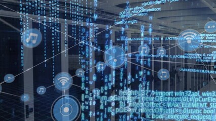 Digital Network Icons Over Computer Servers Videos