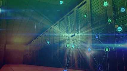 Digital Network Icons Overlay In High Tech Server Room Videos