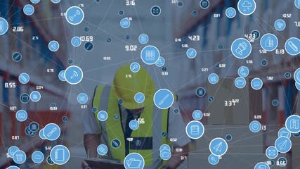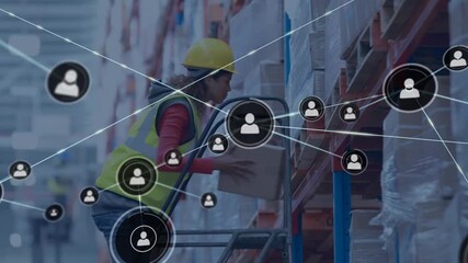 Digital Network Illustration In Warehouse With Worker Videos