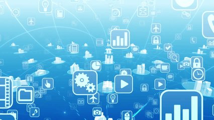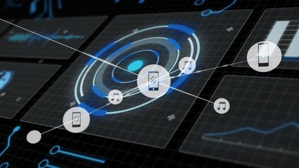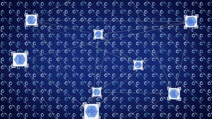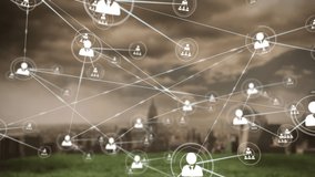 Digital Network Interconnected Icon Matrix With Tv Static Overlay Videos
