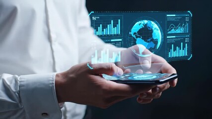 Digital Network Interface Concept With Earth And Graph Overlay Videos