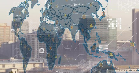Digital Network Interface Over City Skyline Videos