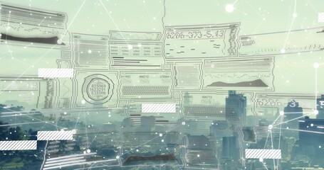 Digital Network Interface Over City Skyline Videos