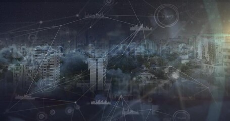 Digital Network Interface Over City Skyline Videos