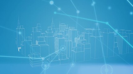 Digital Network Interface Over Cityscape Background Videos