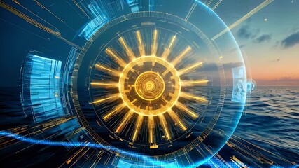 Digital Network Interface Over Ocean Background Videos