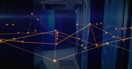 Digital Network Nodes Overlaying Data Center Corridor Videos