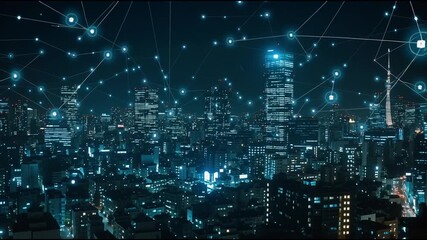Digital Network Over Connected Cityscape Videos