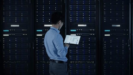 Digital Network Overlaid On Server Room With Data Interfaces Videos