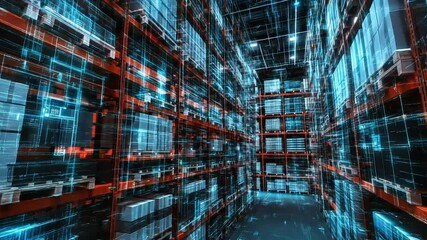 Digital Network Overlay In Logistics Warehouse Background Videos