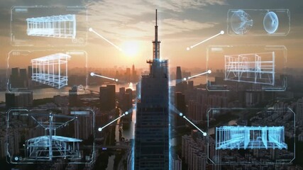Digital Network Overlay On Construction Plan Blueprint Videos