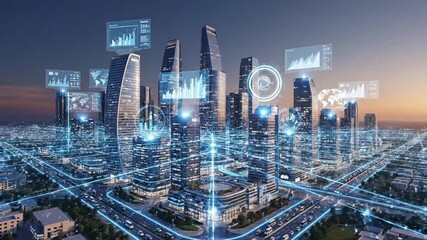 Digital Network Overlay On Urban Landscape Videos