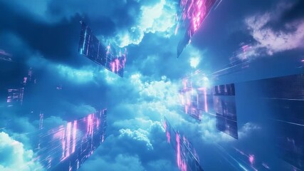 Digital Network With Cloudy Matrix Background Videos