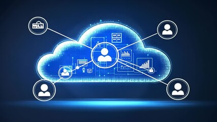 Digital Network With Profile Icons On Cloud Background Videos