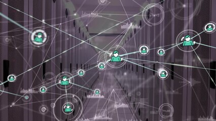 Digital Networking In Server Room With Data Icons And Connections Videos