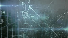 Digital Networks Overlay Cityscape With Grid And Data Videos