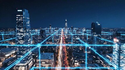 Digital Networks Overlay Cityscape With Grid And Data Videos
