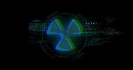 Digital Nuclear Symbol With Data Glitching Background Videos