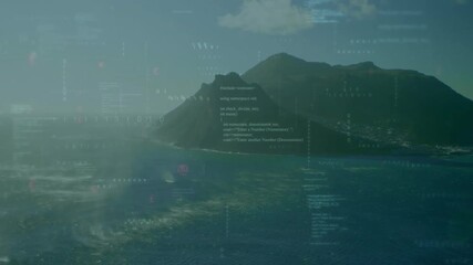 Digital Overlay Of Data Streams On Serene Beach Videos