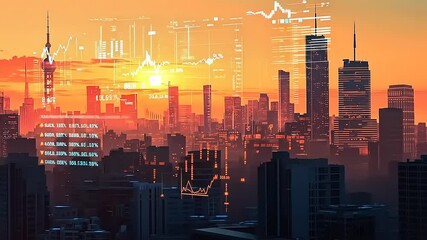 Digital Overlay Of Financial Data On City Skyline Videos