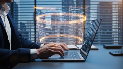 Digital Overlay Office Meeting With Futuristic Cityscape Videos