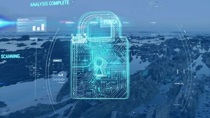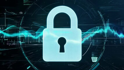 Digital Padlock Overlay On Abstract Data Interface Videos