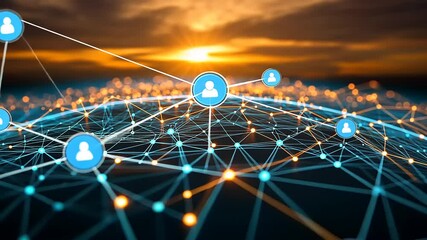 Digital Profile Network Interface With Data And Landscape Background Videos