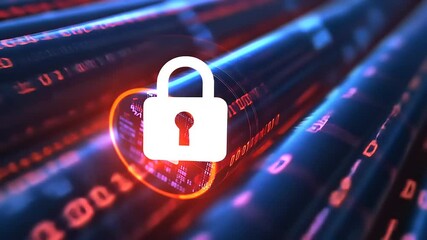 Digital Security Concept With Padlock And Data Streams Videos