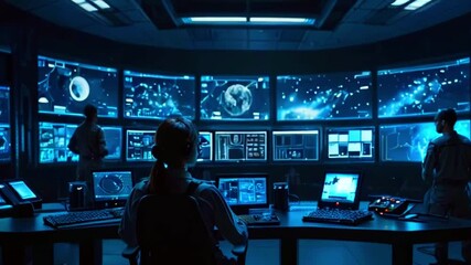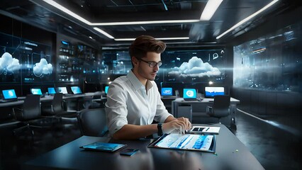 Digital Security Interface With Professionals Collaborating In Office Videos