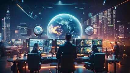 Digital Security Interface With Professionals Collaborating In Office Videos
