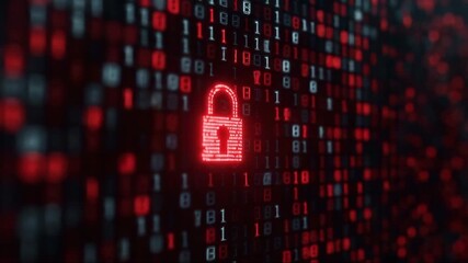 Digital Security Lock Icon Amidst Binary Code Background Videos
