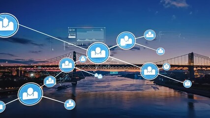 Digital Security Network Over Cityscape Videos