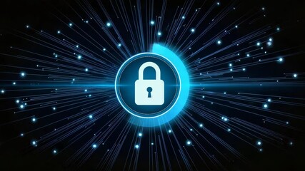 Digital Security Shield With Padlock Icon On Blue Tech Background Videos