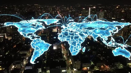 Digital Sharing Concept With Globe Visualization Over Cityscape Videos