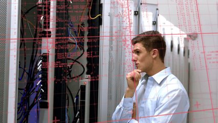 Digital Stock Data Processing Overlaid On Server Room Videos