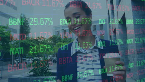 Digital Stock Market Display Overlaying Urban Scene Videos