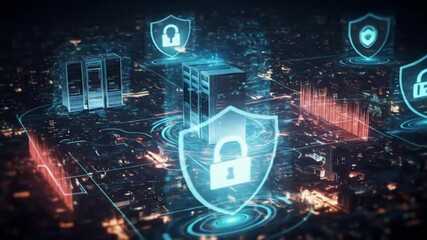Digital World Data Network Over Cityscape Animation Videos