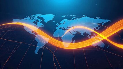 Digital World Map With Data Streaming Background Videos