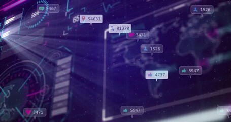 Digital World Map With Icons And Numeric Data Overlay Videos