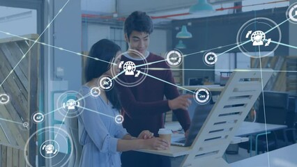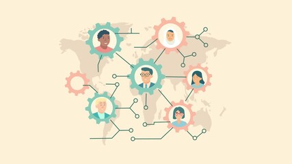 Digital World Network Animation Over Diverse Team Collaboration Videos