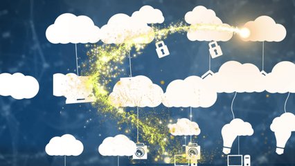 Digitized Cloud Icons With Streaming Data And Light Flare Videos