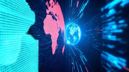 Digitized Earth With Binary Code And Global Network In Blue Videos