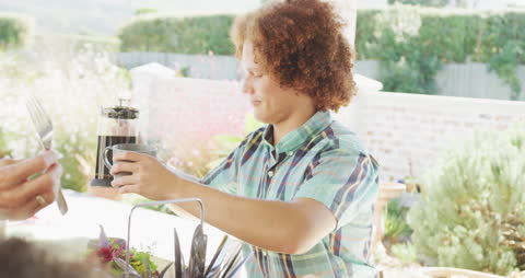 enjoying coffee
