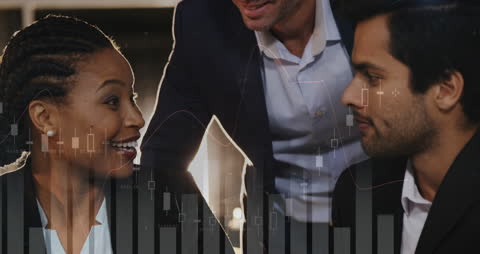 Diverse Business Team Analyzing Financial Data With Graph Overlay Videos