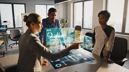 Diverse Business Team Collaborating With Digital Financial Data Interface Videos