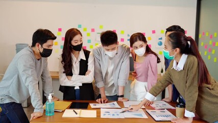 Diverse Business Team Collaborating With Face Masks In Modern Office Videos