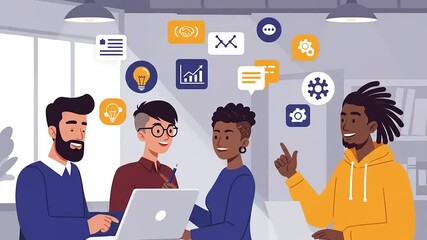 Diverse Business Team Discussing Digital Icons In Modern Office Videos