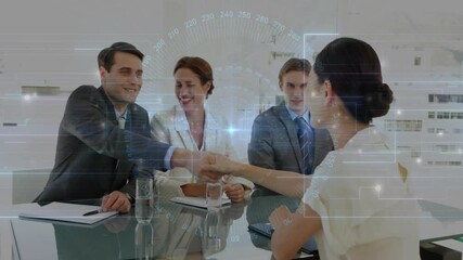 Diverse Business Team With Digital Interface Overlay Videos