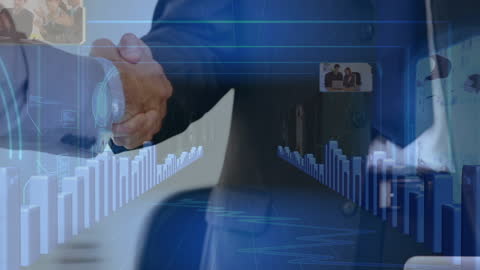 Diverse Businessmen Shaking Hands With Data Overlay At Cafe Videos